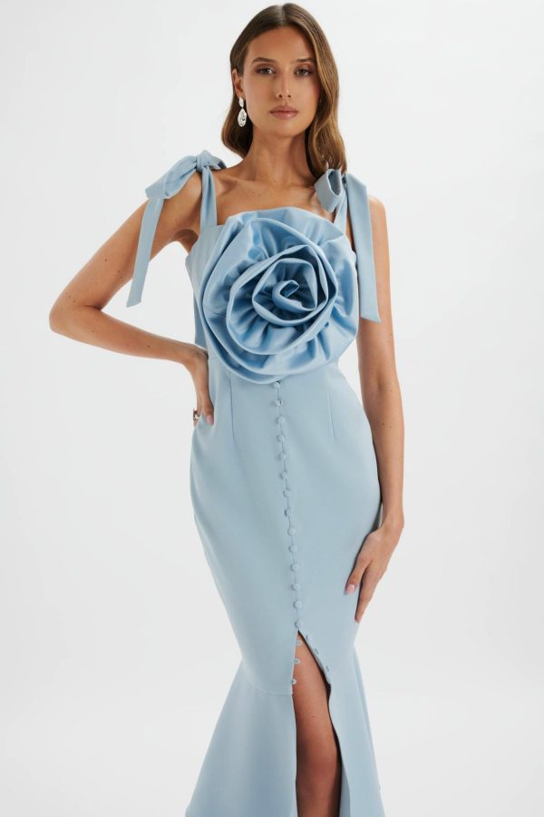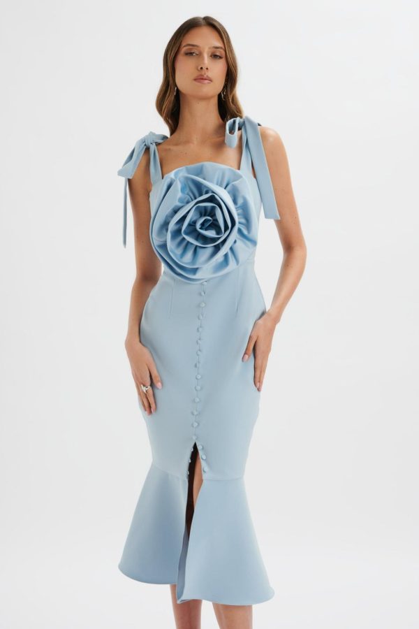 Bow Dresses | Women Lavish Alice AUGUST Flower Detail Tie Strap Micro Button Midi Dress In Cornflower Blue Cornflower B