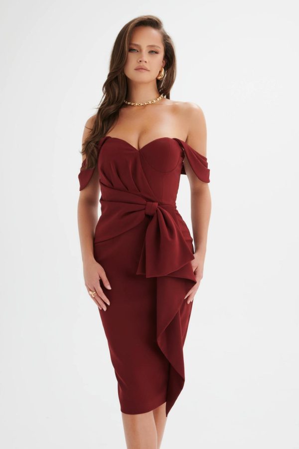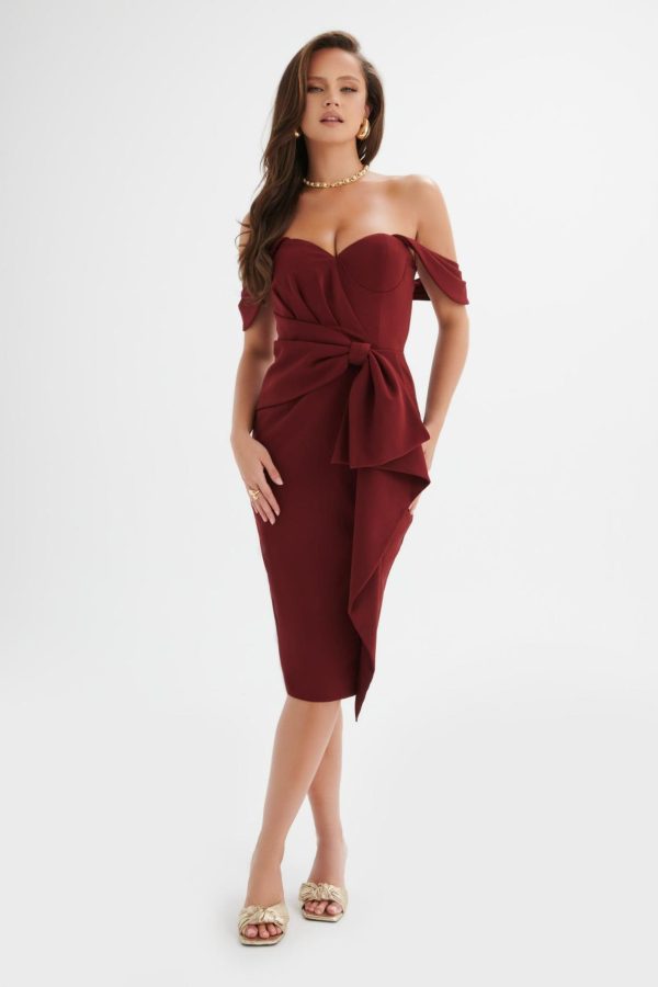 Bow Dresses | Women Lavish Alice LORI Off Shoulder Bow Detail Midi Dress In Burgundy Burgundy