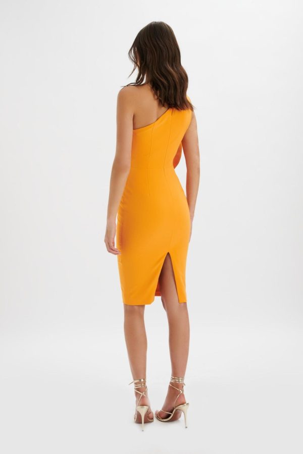 Off The Shoulder & Bardot | Women Lavish Alice NOLA D Statement Ruffle Midi Dress In Papaya Papaya