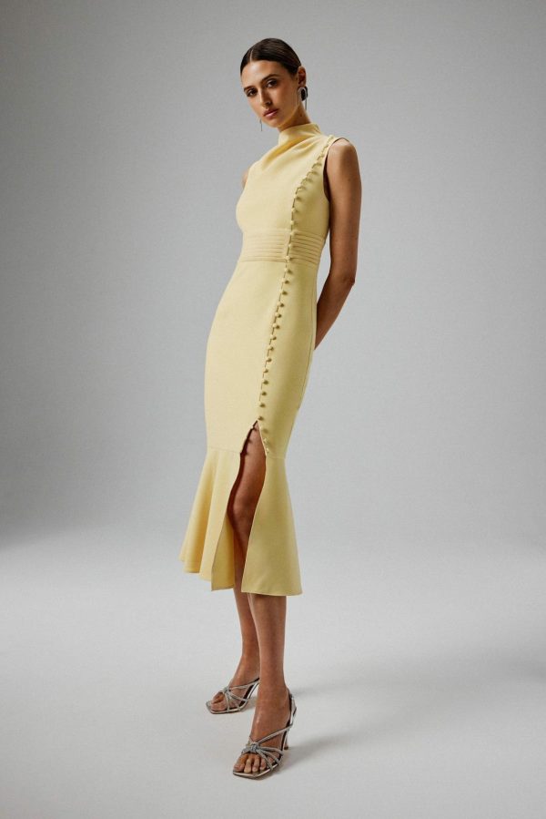 Wedding Guest | Women Lavish Alice SAFFRON High Neck Micro Button Midi Dress In Yellow Yellow